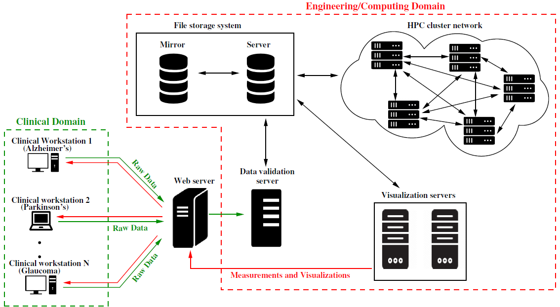 Advances in Biomedical Imaging have enabled scientists to acquire exquisite images of human anatomy and function and these images are vital to understand the onset and progression of a wide range of human diseases. Modern scanners are exquisite cameras - they can observe exquisite detail of internal anatomy and function that are provided in the form of raw images. The availability of large scale imaging databases, containing hundreds of thousands to millions of images, has now shifted the bottleneck in understanding diseases from the acquisition of data to the analysis and interpretation of data. In the 'omics' era of "biomedical big data", where databases containing several terabytes of imaging data are commonly available, computational algorithms, tools and software for the analysis of large scale multimodal and multivariate datasets are essential to discover useful patterns, identify outliers and interpret each image in the context of variability in normal and diseased states. In addition, the ability of process tens-of-thousands to hundreds-of-thousands of images through computational models and tools requires the ability to harness the compute power of geographically-distributed clusters in an automated manner, for it is manually unfeasible to manage the required order of millions of jobs to perform the many steps in measurements needed in large scale processing.